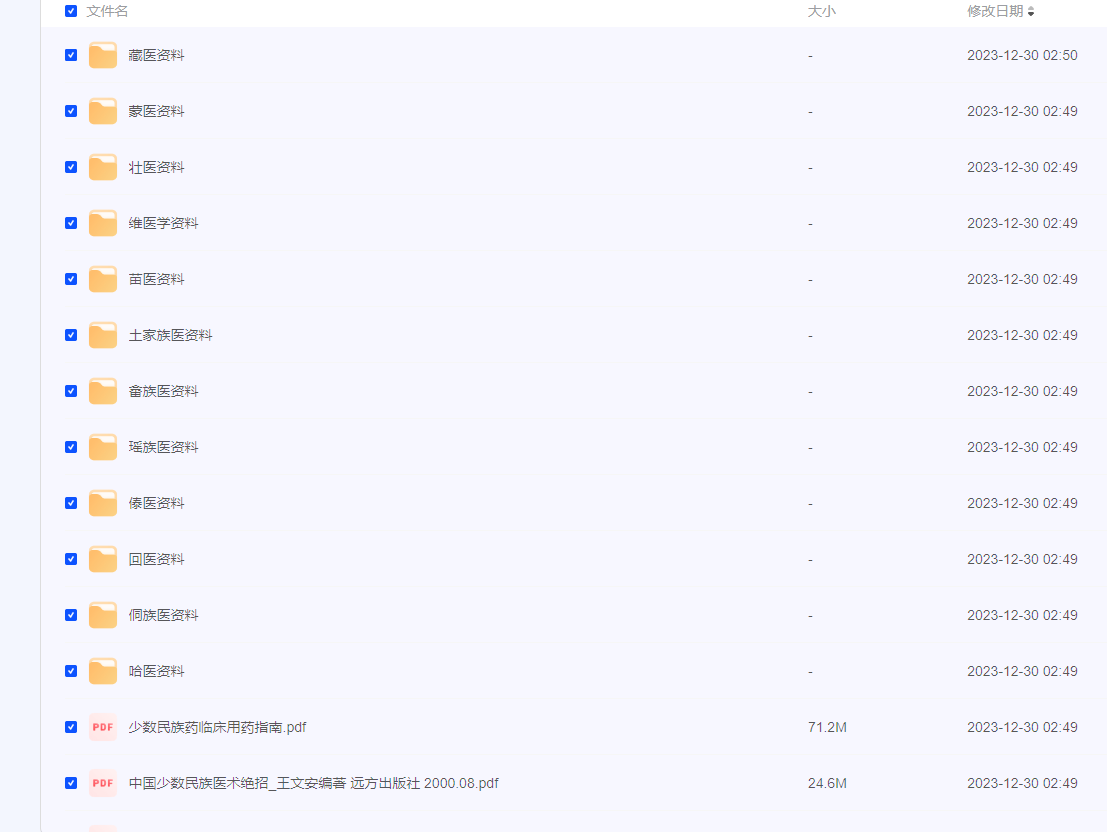 分享目的仅供大家学习和交流,您必须在下载后24小时内删除! 2. 不得使用于非法商业用途,不得违反国家法律。否则后果自负! 3. 本站提供的源码、模板、插件、软件、等等其他资源,都不包含技术服务请大家谅解!内容投诉资源库 » 16种民族医资料