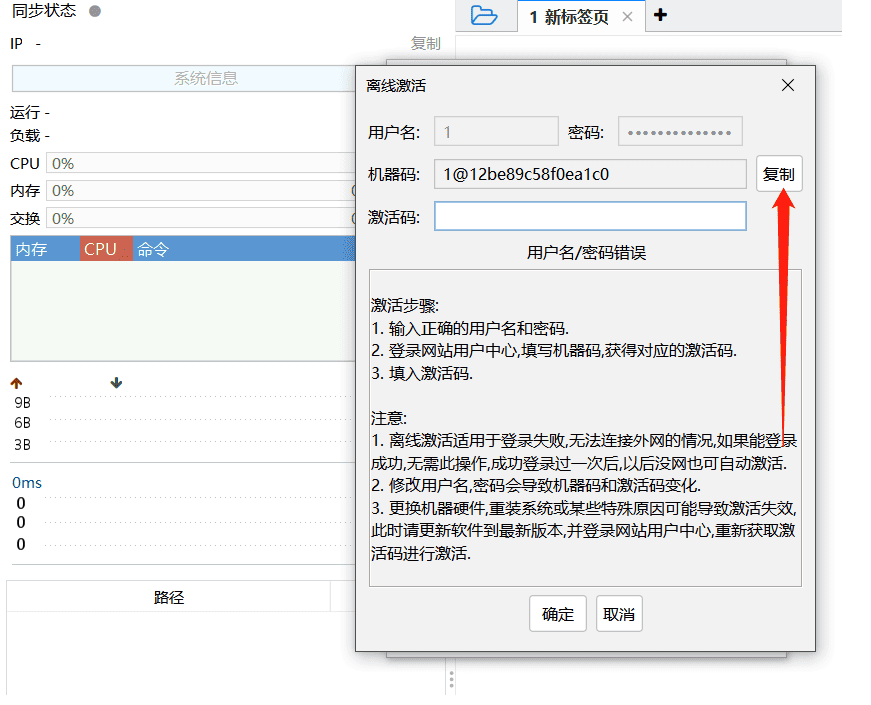 随便输入账号密码,然后选择离线激活即可获得机器码.