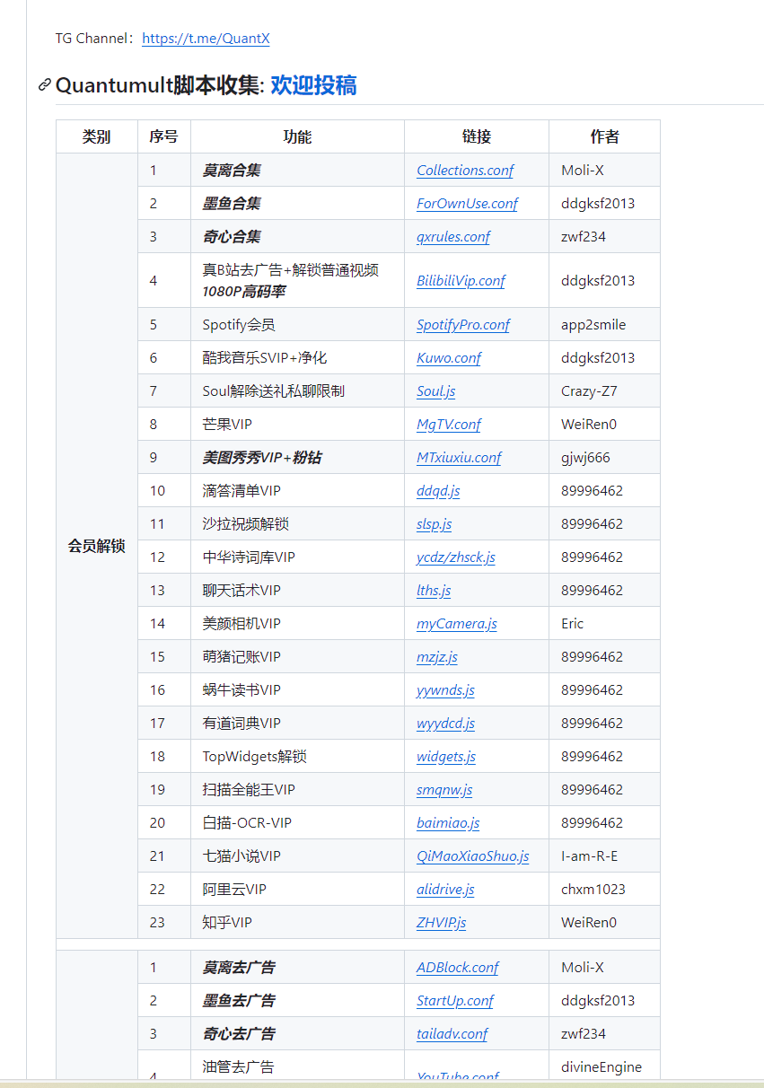 Moli X一个GitHub仓库,主要是一些Quantumult X会员解锁、去广告脚本规则集合,基于QuantumultX,Loon,Surge的配置重写,脚本,插件等等,非常丰富,而且仓库脚本集合还在不断更新,感兴趣的同学可以到仓库看看。