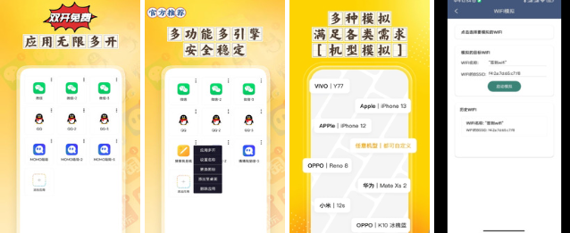 支持应用实现多开、无限分身,同时提供位置隐私保护、应用图标及名称自定义、拍照模拟、机型模拟以及WIFI模拟等强大功能。 一部手机轻松实现社交应用多开、电商应用多开、游戏多开等所有应用的多开分身,完美解决用户多账户同时在线的需求。