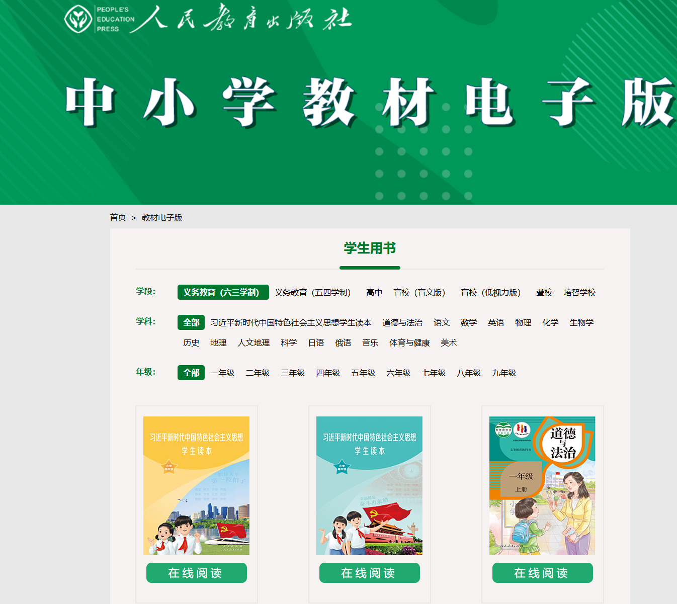 第一步:打开人民教育出版社电子教材地址 【点这打开】