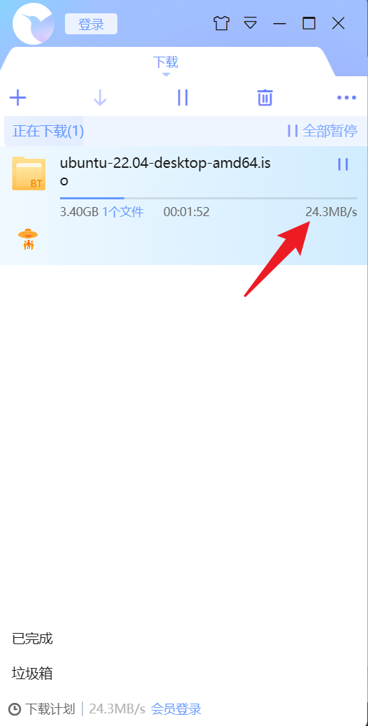 然后软件就开始下载了,看看趣哥这里的速度达24.3MB/s,这速度是非常不错的。