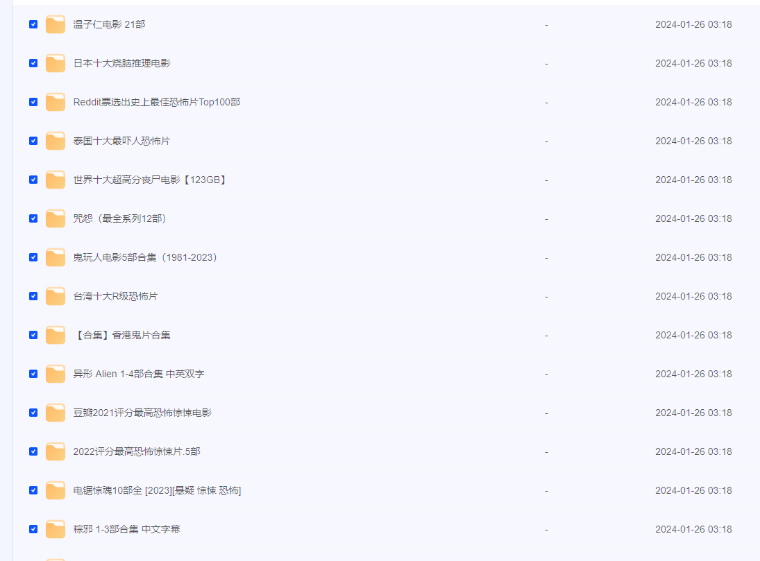 资源库 » 全网最全恐怖片合集上千部1.7TB