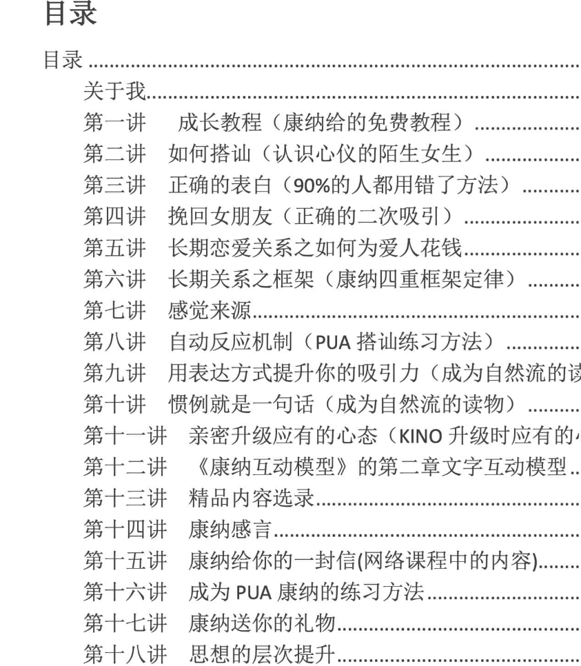 一本书:康纳PUA玩家手册关于教学男同学如何实现梦想的书籍,而这本《康纳玩家手册》在网络是估计比较热门的,单单一个论坛下载超过数千次,而且实用性好评 5 个星!!!在百度文库、 新浪、道客巴巴及在 QQ 群中广泛传播目前下载及阅读量约 20 万!!!!,而且快到七夕了,有需要的男同学可以下载学习。