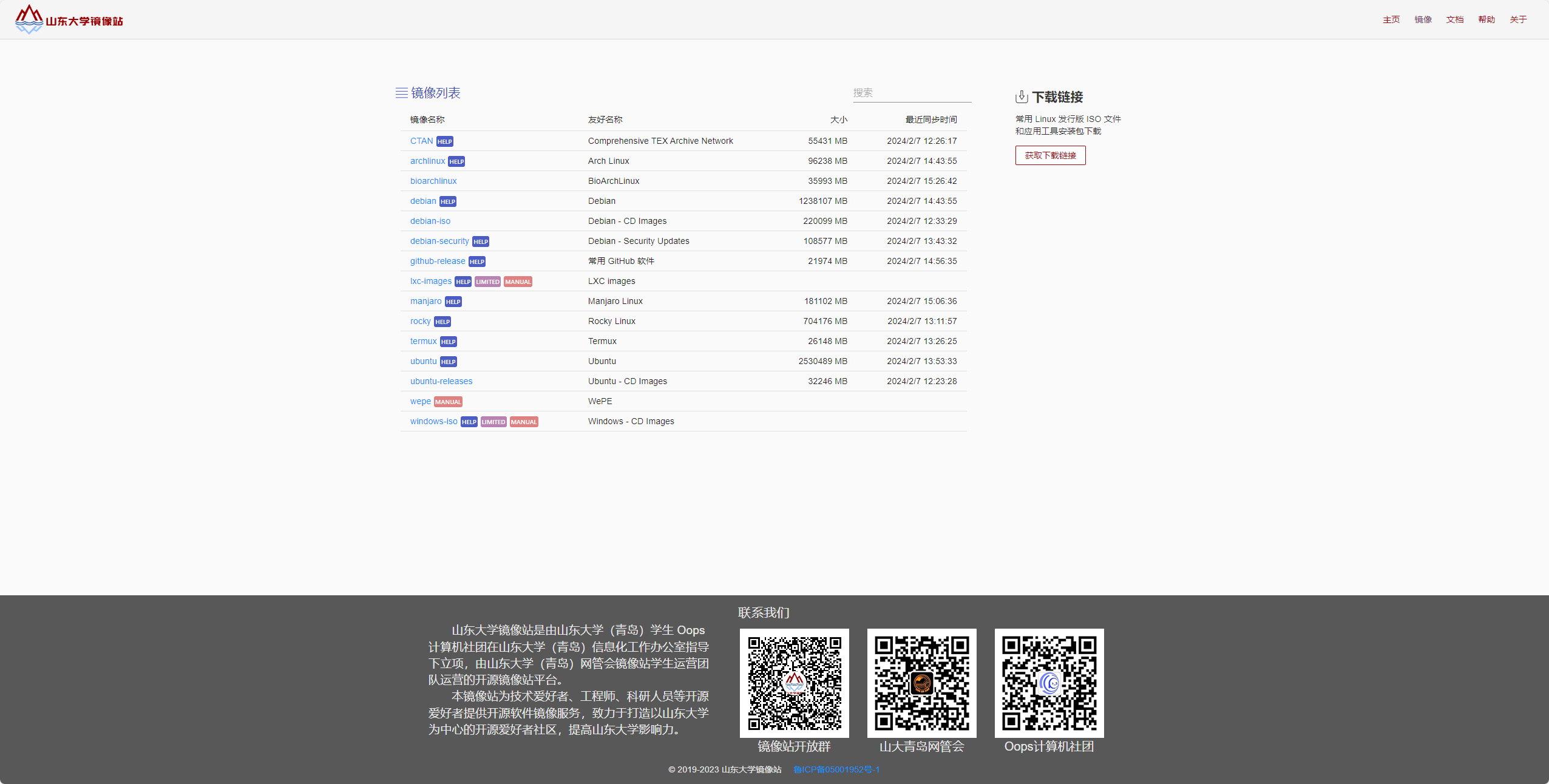 山东大学镜像站是由山东大学(青岛)网管会镜像站学生运营团队运营的开源镜像站平台,网站平台专门为技术爱好者、工程师、科研人员等开源爱好者提供给丰富的开源镜软件像资源,以及相关的学习和帮助资料,对于国内网络不好或者是网络小白可以直接使用,国内网络下载软件、镜像速度非常快。